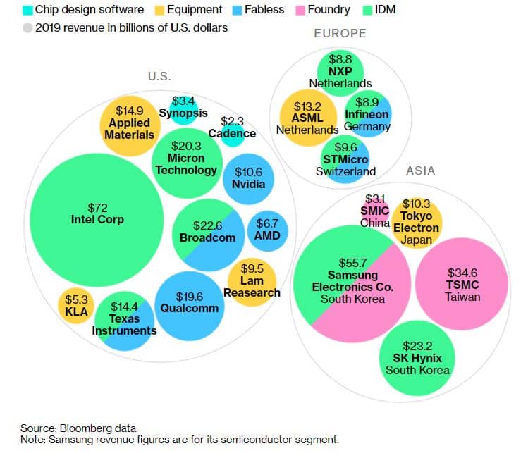 แต่บริษัทชื่อดังเหล่านี้เป็นบริษัทประเภท Fabless จึงต้องจ้างบริษัท Foundry ผลิตให้จึงทำให้เกิดปัญหาคอขวดในอุตสาหกรรม Semiconductor โดยกว่า 91% ของการผลิตจากบริษัท Foundry มาจากเอเชีย ซึ่งหนีไม่พ้นประเทศไต้หวัน และเกาหลีใต้ ประกอบกับการแพร่ระบาดของ COVID-19 ทำให้มีความต้องการอุปกรณ์อิเล็กทรอนิกส์เพิ่มขึ้น เช่น ยอดขาย PC ปี 2020 เพิ่มขึ้น 4.8% นับเป็นการเติบโตมากที่สุดตั้งแต่ปี 2010